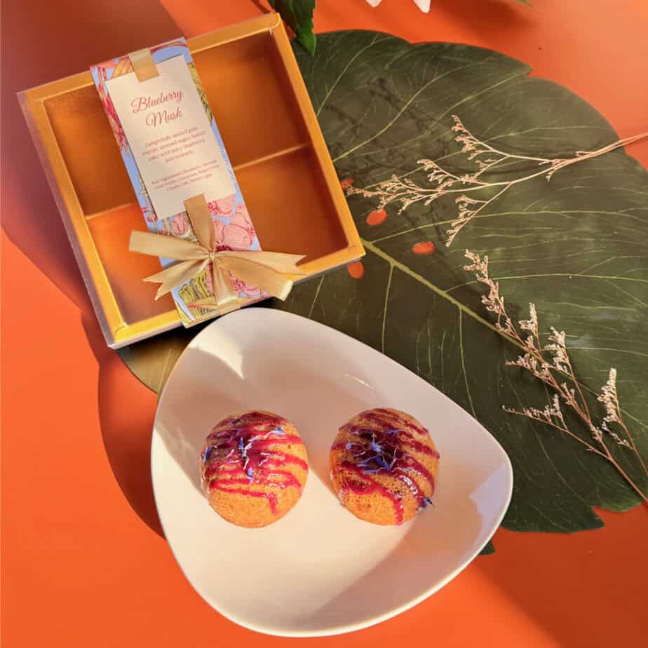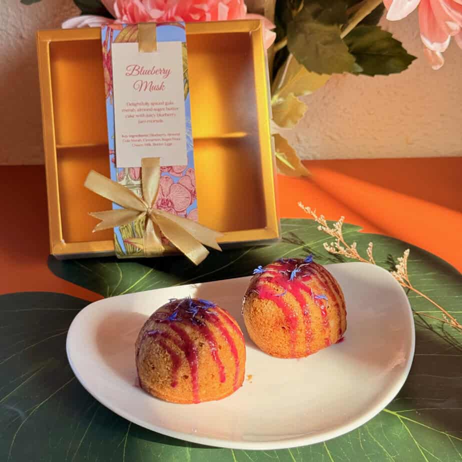 Enjoy 4 miniature Blueberry Musk sugee butter cakes in a gift box, perfect for gifting to family and loved ones.