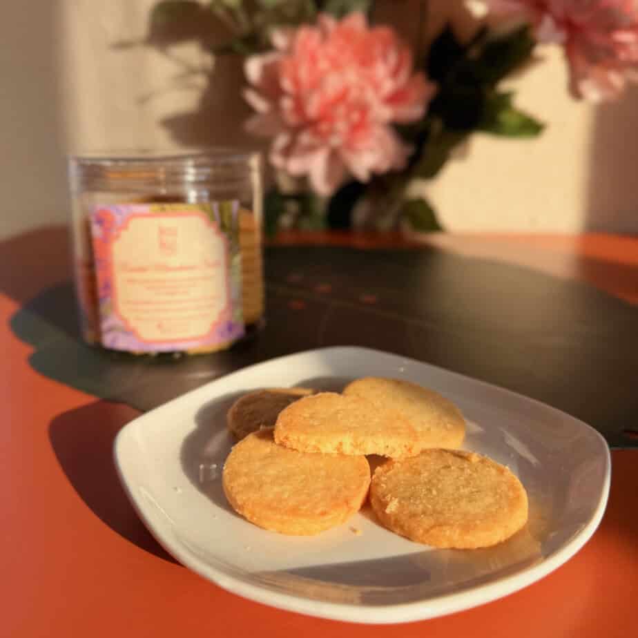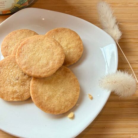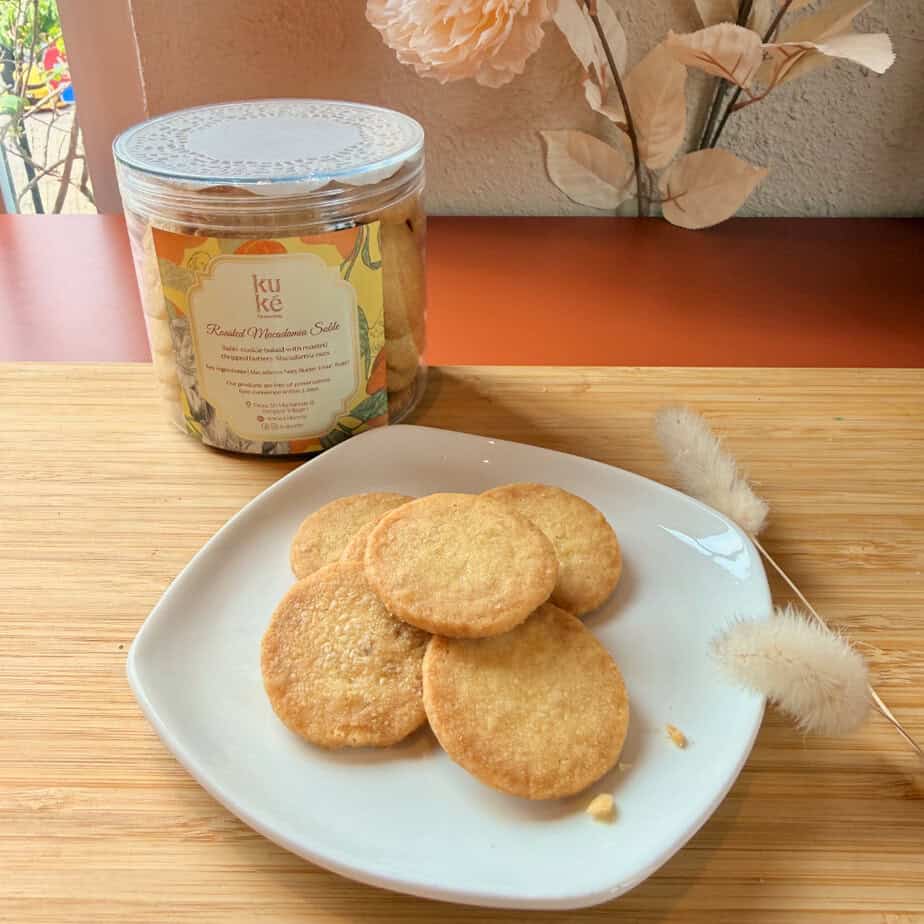 Sable cookie with roasted chopped Macadamia nuts. Simplicity is the ultimate sophistication.